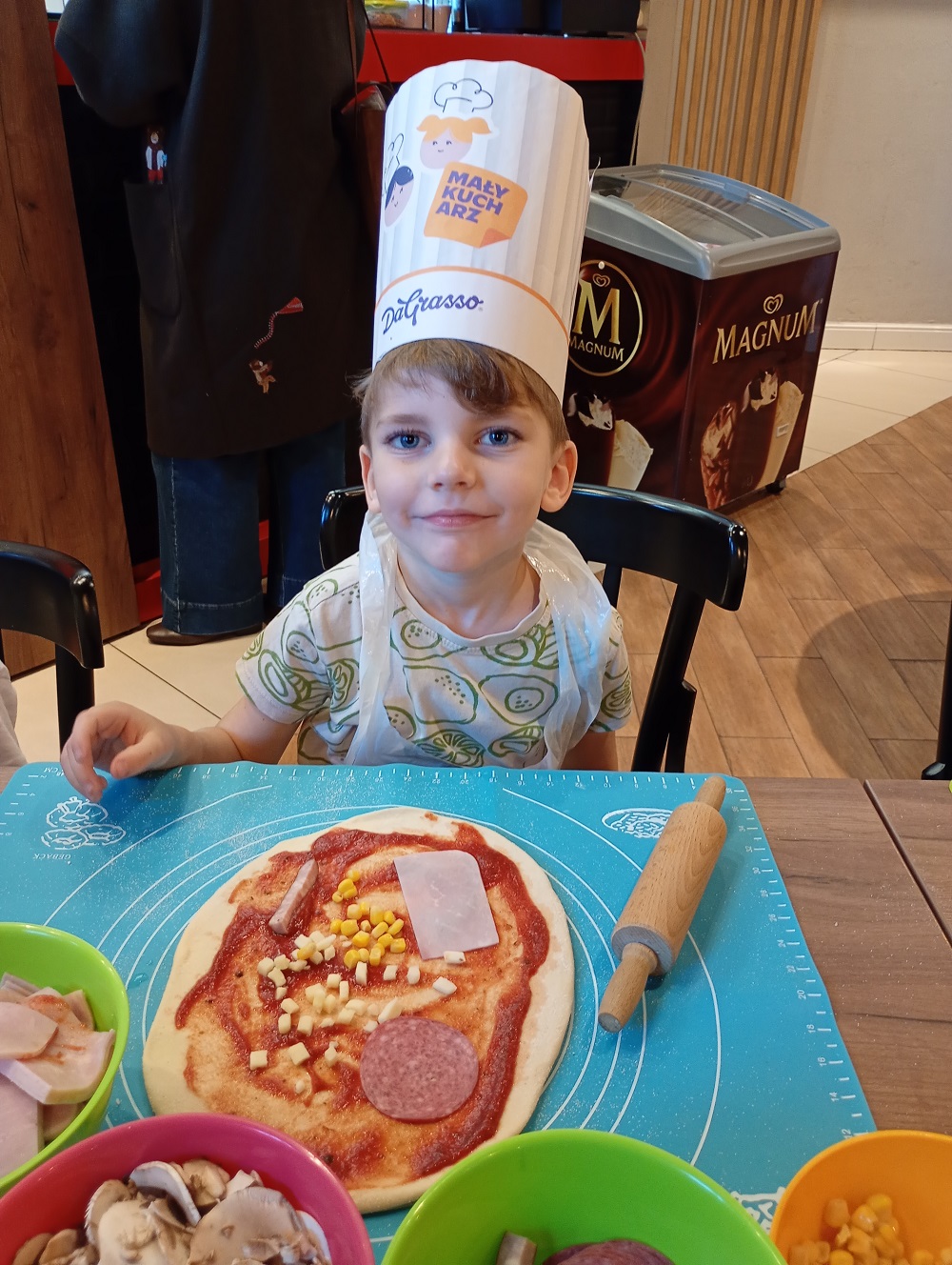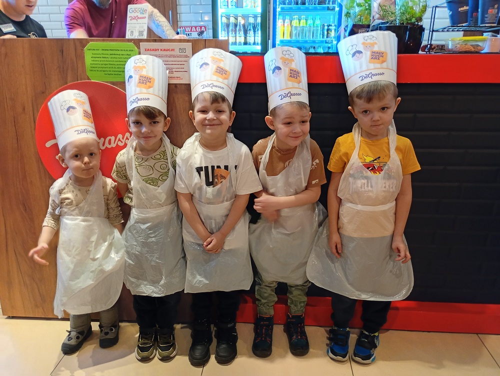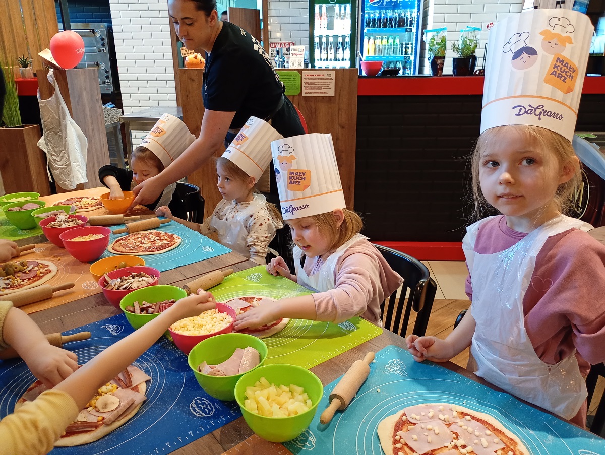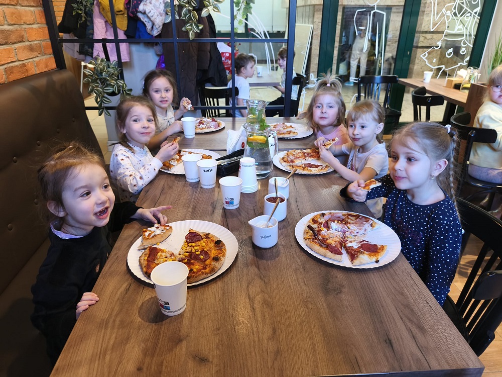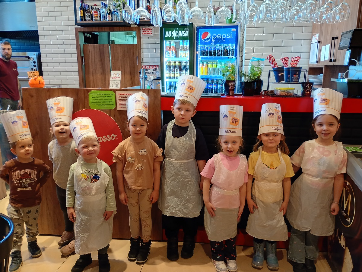 3 marca nasze przedszkolaki udały się na wycieczkę do pizzerii "Da Grasso”. Celem wycieczki było zapoznanie ze sposobem przygotowania pizzy, a także uwrażliwienie dzieci na kulturalne zachowanie się w miejscu publicznym. Po krótkim instruktażu dzieci zabrały się do robienia swoich własnych pizz. Pod bacznym okiem pracowników pizzerii dzieci formowały ciasto, smarowały je sosem, następnie komponowały dodatki według własnego smaku a na koniec posypywały serem. Dzieci bardzo poważnie potraktowały zadanie i z wielkim skupieniem wykonywały swoją pracą. Po upieczeniu przedszkolaki przystąpiły do degustacji. Wszystkie wypieki wyszły doskonale. Dzieci jadły z wielkim apetytem przygotowane przez siebie pizze. Wycieczka była bardzo udana, dzieci wróciły do przedszkola bogatsze o nową wiedzę i nowe doświadczenia.