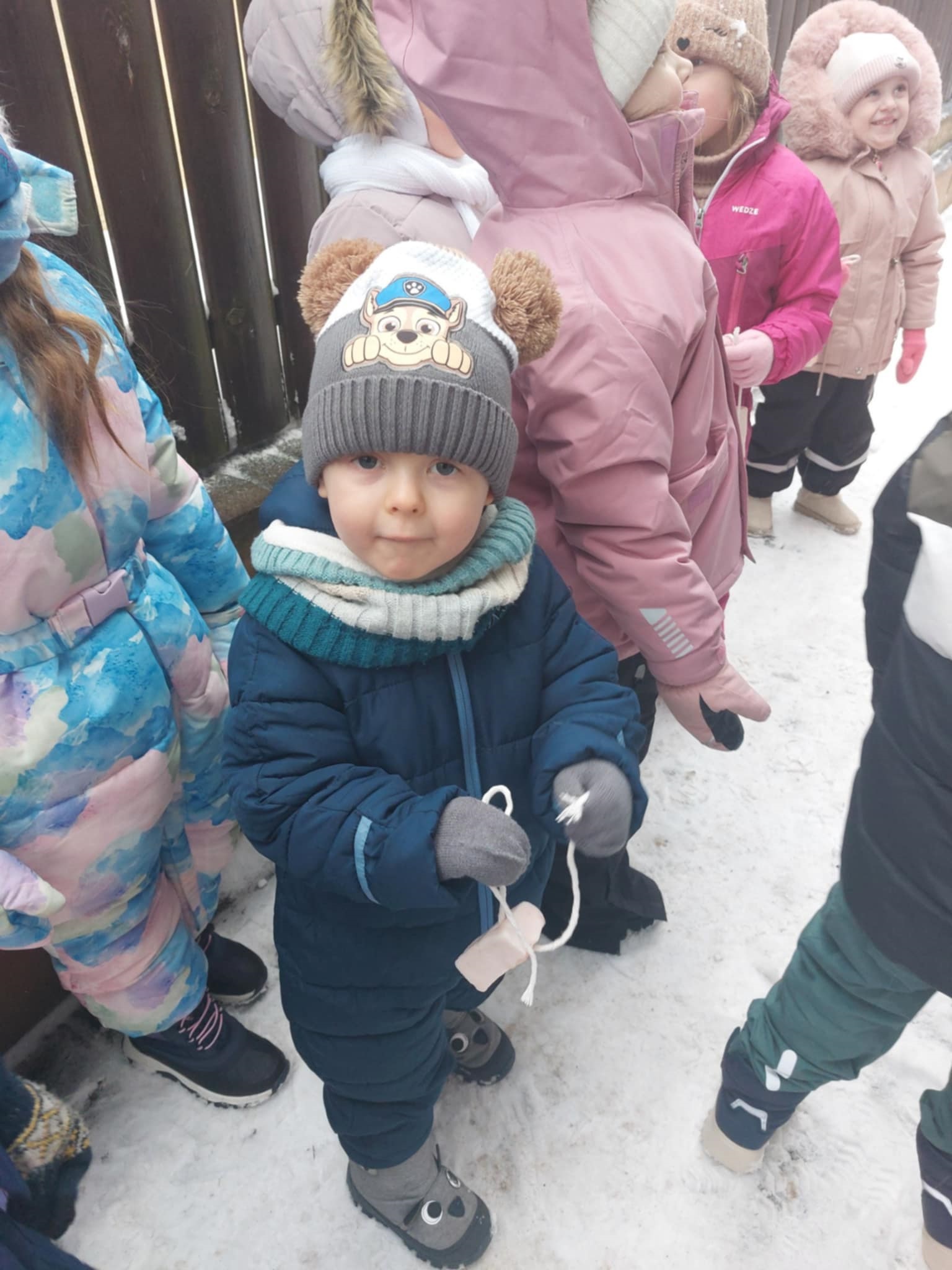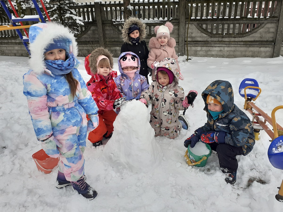 Zimą też potrafi być wspaniała zabawa. Wystarczy ciepłe ubranie, szalik, rękawiczki i sanki. Dziś nasze przedszkolaki cudownie bawiły się na placu zabaw. Była bitwa na śnieżki, lepienie bałwana oraz jazda na sankach. Dzieci przyniosły słoninkę oraz ziarenka dla ptaków, które zostały włożone do karmnika oraz powieszone na drzewie.